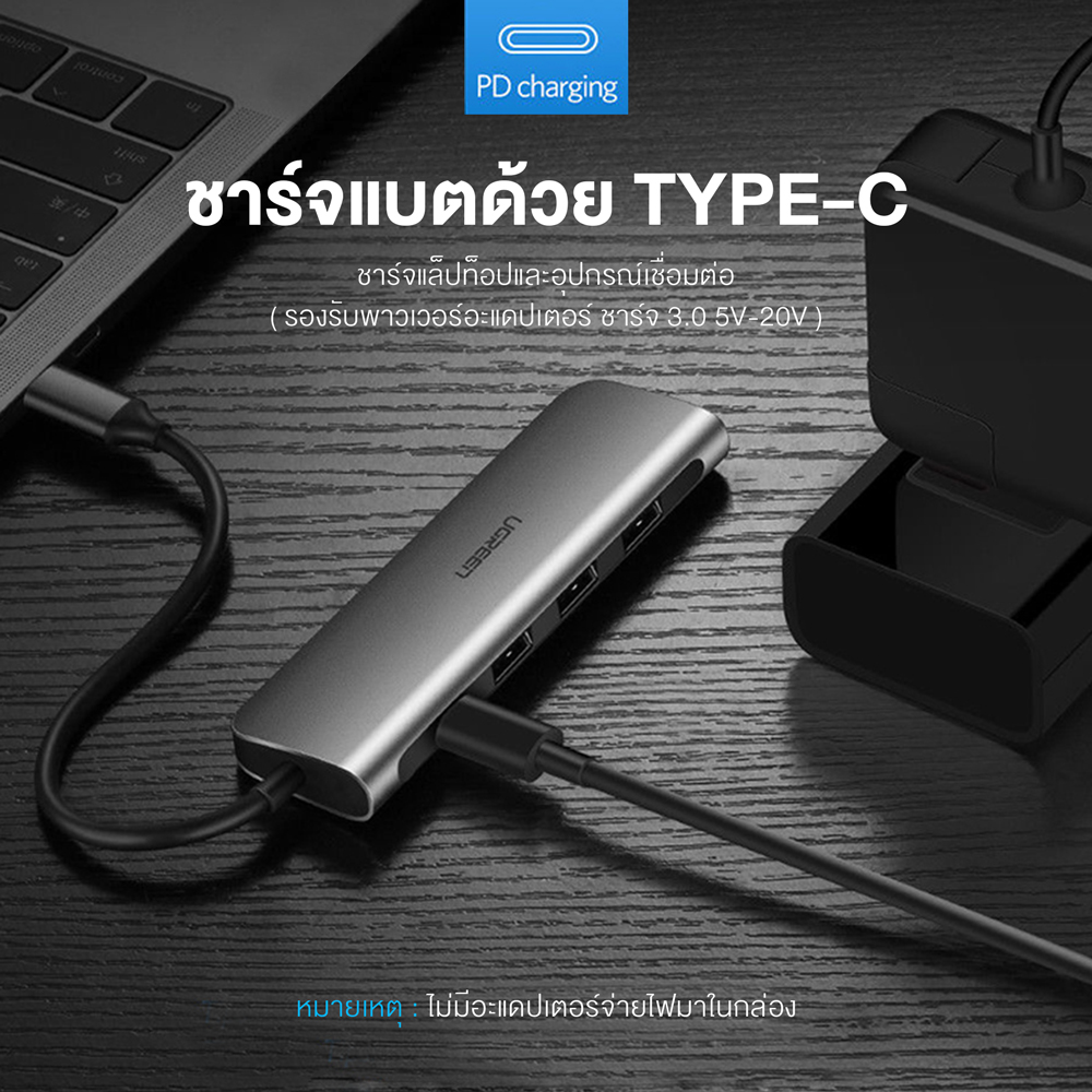 UGREEN USB C USB3.1 TYPE C Multi Port Hub 5 in 1 ตัวแปลง Hub, HDMI 4K, 60W USB C PD Charge Port